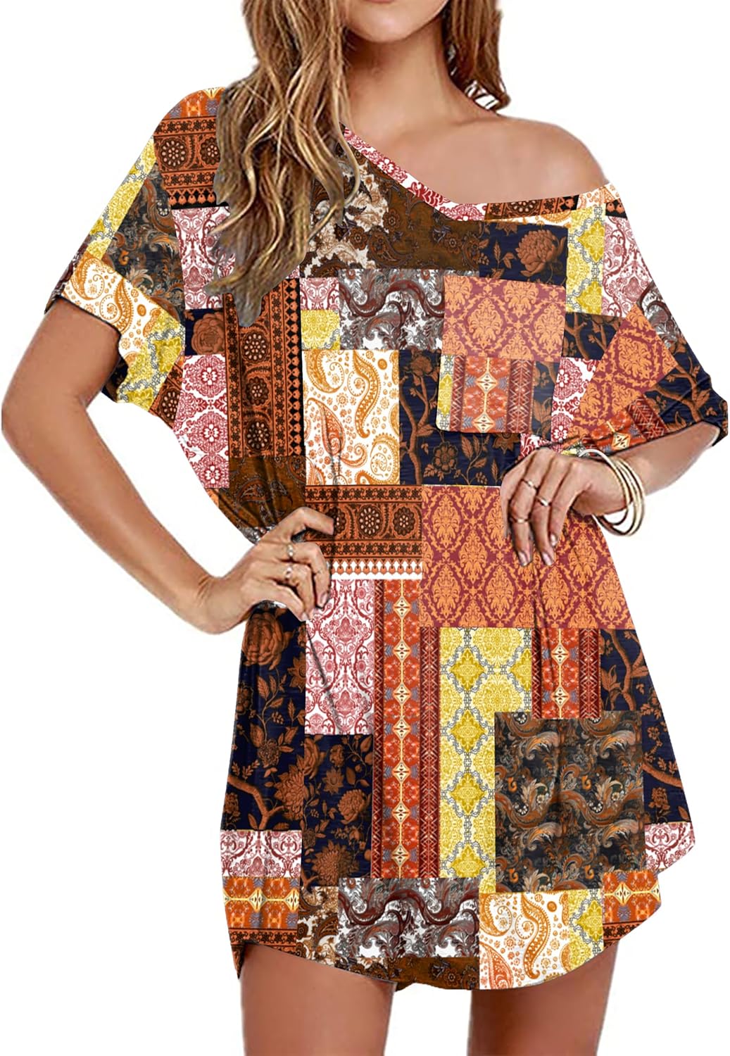 - 【Feature】:Boyfriend style womens T-shirt lounge dress designs knee length,loose and casual provides you enough room to move .Comfy and Sexy Flattering,As You Want Loose Fit Style, One Shoulder, Off-The-Shoulder, V Neck, Loose Tee Shirt Nightgown Tunic Look, Oversized Nightdress
